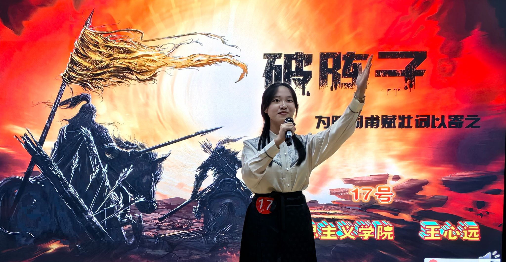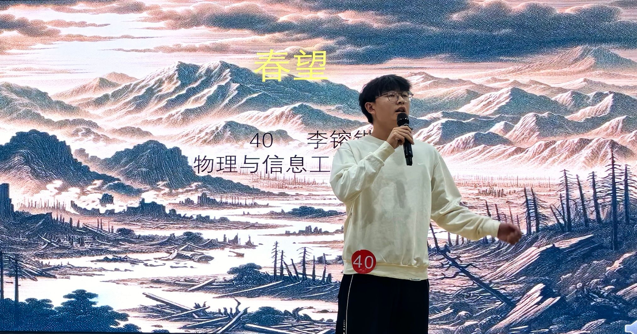 唐诗宋词韵味悠长,辉映着多元开放的唐宋气象,激荡着华夏儿女家国同构的永恒诗心。我校举办本次2025年闽南师范大学新生诵读大赛,46名选手沿溯不朽中华文脉,咏诵经典;涵养万古诗礼词韵,礼敬先贤。诵读大赛上,参赛者们着装典雅,为观众献上了一场沉浸式的视听盛宴。2号选手吴雨琪《定风波》语调从容,举重若轻,传递了苏轼笑对风雨的豁达心境。11号选手郭璟璇《一剪梅》嗓音柔婉,情意绵绵,把李清照的相思之苦吟唱得百转千回。13号选手杨艺《满江红》情绪饱满,慷慨激昂,演绎出岳飞精忠报国的冲天怒气。21号选手何建行《书愤》沉郁顿挫,掷地有声,尽显陆游壮志未酬的悲愤与苍凉。24号选手谢芷涵《锦瑟》音色华美,情感迷离,用音韵为李商隐的千古怅惘蒙上朦胧面纱。39号选手廖雅虹《黄鹤楼》意境悠远,韵味深长,以悠扬的节奏道尽了崔颢的乡愁与哲思。选手朗诵各具特色,从不同视角展现了唐宋的诗词风采,仿佛将人们带回了千年前的诗意世界。